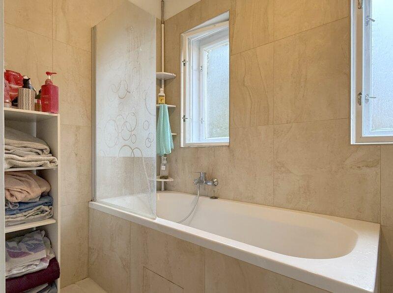 Das Haus wurde 1963 in Massivbauweise errichtet und verfügt über rund 105 m² Wohnfläche auf zwei Ebenen. Im Erdgeschoss befinden sich ein Wohn-Essbereich, eine separate Küche, das Vorzimmer sowie ein WC. Das Obergeschoss bietet zwei Zimmer, ein Badezimmer mit Badewanne, ein separates WC und einen Abstellraum. Zusätzlich ist das Haus voll unterkellert, der Keller umfasst etwa 55 m² Nutzfläche.