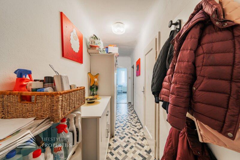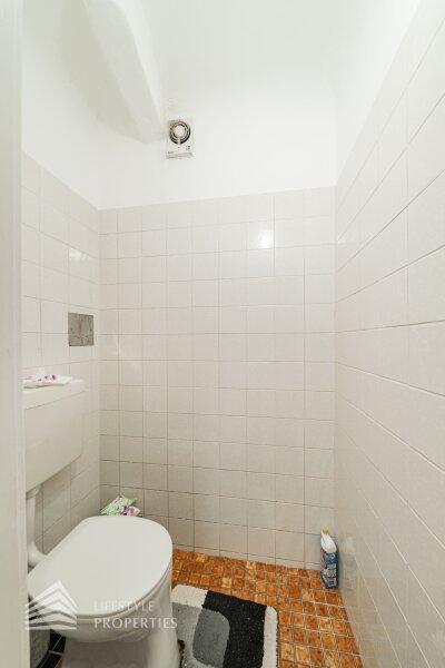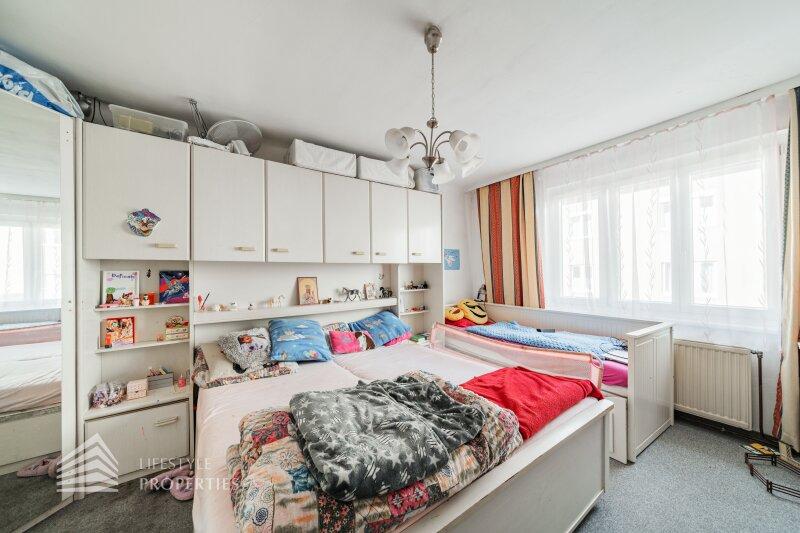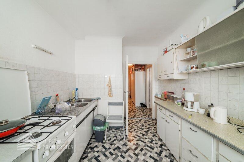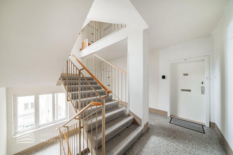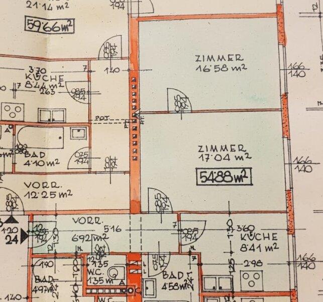 Die renovierungsbedürftige Wohnung befindet sich im 4. Obergeschoss (ohne Lift) eines im Jahre 1961 errichteten Neubaus. Sie erstreckt sich über eine Wohnfläche von ca. 55 m² und teilt sich auf in einen Vorraum, zwei Wohnräume, eine Küche, ein Badezimmer sowie ein separates WC.