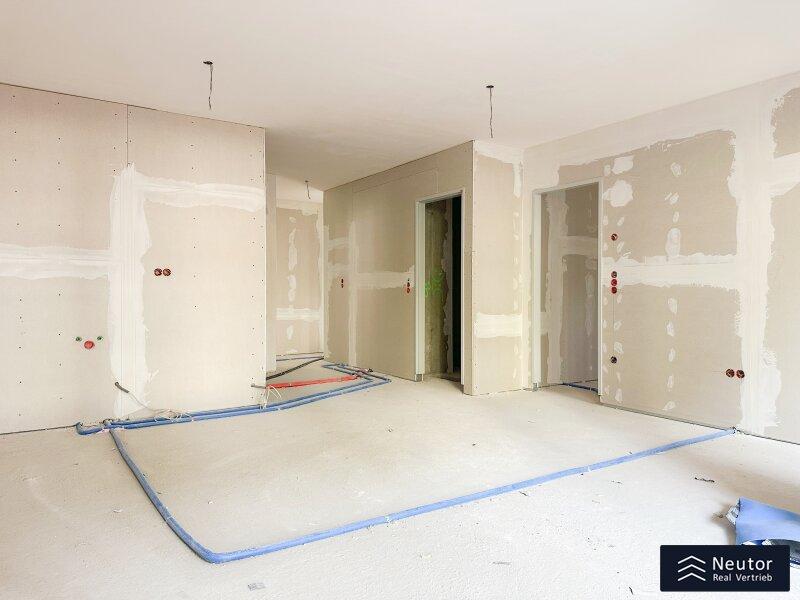 Ein weiteres Plus dieses exklusiven Neubaus: Den zukünftigen Bewohner:innen stehen Garagenstellplätze mit Elektroladestationen zur Verfügung. Für nachhaltige Mobilität ist ebenfalls gesorgt ein großzügiger Fahrradabstellraum mit der Möglichkeit, E-Bikes zu laden, ist Teil des durchdachten Gesamtkonzepts. Die Fertigstellung und Bezugsbereitschaft des Projekts ist für 01. Mai 2026 geplant. Die energieeffiziente Bauweise, Fußbodenheizung sowie eine moderne Haustechnik sorgen ganzjährig für ein angenehmes Wohnklima. Beheizt wird das Gebäude über eine nachhaltige Luftwärmepumpe, die in den Sommermonaten zusätzlich eine angenehme Temperierung ermöglicht. Ergänzt wird das durchdachte Energiekonzept durch eine Photovoltaikanlage am Dach, die zur umweltfreundlichen Stromerzeugung beiträgt und dabei hilft, die Stromkosten der Allgemeinteile zu optimieren. Im Badezimmer unterstreicht ein maßgefertigter Unterbauschrank in hochwertiger Tischlerarbeit den hohen Ausstattungsstandard des Projekts.