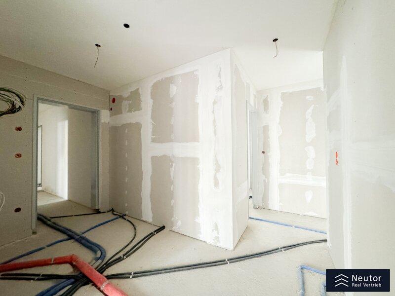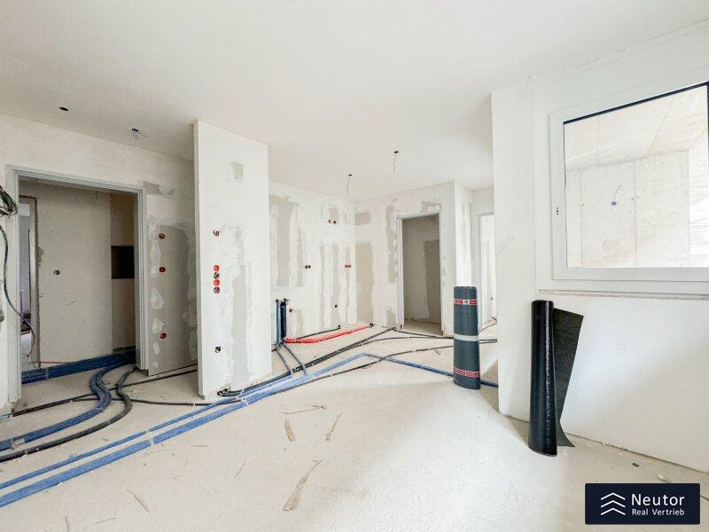 Ein weiteres Plus dieses exklusiven Neubaus: Den zukünftigen Bewohner:innen stehen Garagenstellplätze mit Elektroladestationen zur Verfügung. Für nachhaltige Mobilität ist ebenfalls gesorgt ein großzügiger Fahrradabstellraum mit der Möglichkeit, E-Bikes zu laden, ist Teil des durchdachten Gesamtkonzepts. Die Fertigstellung und Bezugsbereitschaft des Projekts ist für 01. Mai 2026 geplant. Die energieeffiziente Bauweise, Fußbodenheizung sowie eine moderne Haustechnik sorgen ganzjährig für ein angenehmes Wohnklima. Beheizt wird das Gebäude über eine nachhaltige Luftwärmepumpe, die in den Sommermonaten zusätzlich eine angenehme Temperierung ermöglicht. Ergänzt wird das durchdachte Energiekonzept durch eine Photovoltaikanlage am Dach, die zur umweltfreundlichen Stromerzeugung beiträgt und dabei hilft, die Stromkosten der Allgemeinteile zu optimieren. Im Badezimmer unterstreicht ein maßgefertigter Unterbauschrank in hochwertiger Tischlerarbeit den hohen Ausstattungsstandard des Projekts.