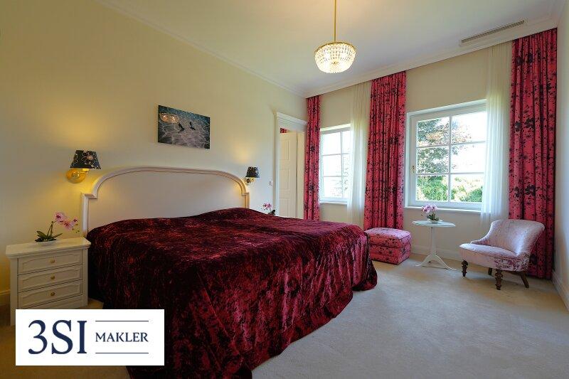 Im Obergeschoß befindet sich die private Rückzugsetage mit Schlafzimmer, zwei luxuriösen Bädern, zwei Ankleidezimmern und einer Terrasse mit spektakulärem Blick über Wien. Ein weiteres Zimmer mit Balkon kann als Arbeits- oder Schlafzimmer genutzt werden. Der Keller, per Lift oder Treppe erreichbar, bietet Technikräume und großzügige Lagerflächen. Die liebevoll gestaltete Gartenanlage bietet absolute Privatsphäre und besticht mit einer Vielfalt an Pflanzen sowie ausgewachsenen Bäumen. Ein erhöht platzierter Pavillon eröffnet einen traumhaften Blick über das gesamte Grundstück, ein Ort der Ruhe und Inspiration. Ein exklusives Highlight ist das Green mit 9 Abschlägen direkt im Garten.