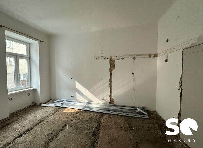 Die Wohnung wird derzeit umfassend modernisiert und präsentiert sich ab 1. Jänner 2026 im Erstbezug - Eine perfekte Kombination aus historischem Altbauflair, zeitgemäßem Wohnkomfort und stylishen Farbkonzepten mit Wandleuchten, Stuckatur und hochwertigen Materialien. Das großzügige Wohnzimmer bildet das Herzstück der Wohnung. Besonderes Augenmerk gilt auch dem Schlafbereich: Dieser verfügt über ein exklusives Bad en Suite, das direkt vom Schlafzimmer aus zugänglich ist, sowie einen französischen Balkon mit Weitblick in den ruhigen Innenhof. TV-Kabel sind im Wohn- und Schlafzimmer vorbereitet.