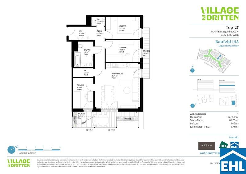 Im dritten Wiener Gemeindebezirk entsteht mit dem VILLAGE IM DRITTEN ein neues Stück Stadt eines der größten Stadtentwicklungsgebiete Wiens. Auf über elf Hektar entwickelt die ARE Austrian Real Estate gemeinsam mit der Stadt Wien und dem wohnfonds_wien ein lebendiges, nahezu autofreies Quartier mit rund 2.000 Wohnungen, Büro- und Gewerbeflächen, Kinderbetreuung, Bildungseinrichtungen und Nahversorgung. Das grüne Herz bildet der über 2 Hektar große Bert-Brecht-Park eine Oase für Erholung, Begegnung und Spiel. Alle Dächer, die nicht begehbar sind, werden begrünt. Sharing-Angebote, Einkaufsmöglichkeiten und Gastronomie liegen direkt vor der Haustüre. Nachhaltigkeit, kurze Wege und hohe Lebensqualität sind die Leitlinien dieses neuen Stadtviertels.