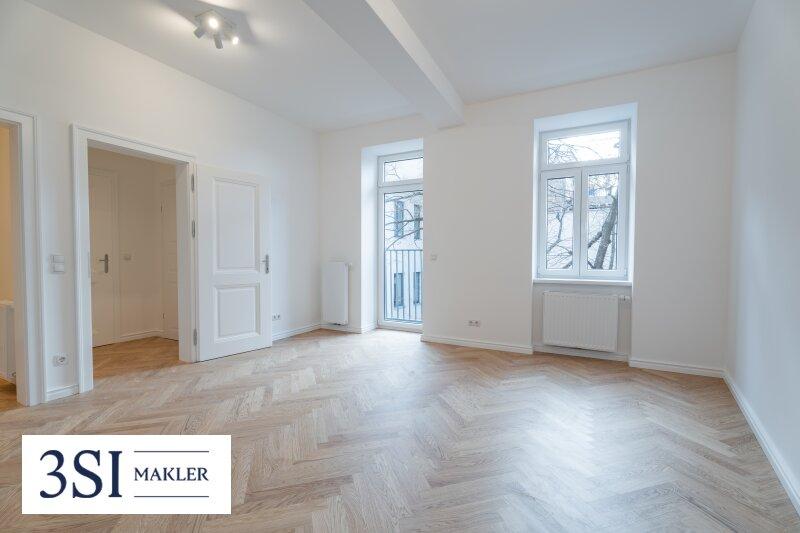 Im Zuge der Sanierung wurde besonderer Wert auf hochwertige Materialien, modernes Design und Wohnkomfort gelegt. Die Wohnung verfügt über Fußbodenheizung, edles Eichen-Fischgrätparkett in den Wohnräumen sowie eine moderne, stilvolle Badausstattung. Große Fensterflächen sorgen für helle Räume und ein angenehmes Wohngefühl, während der Balkon zusätzlichen Freiraum bietet.