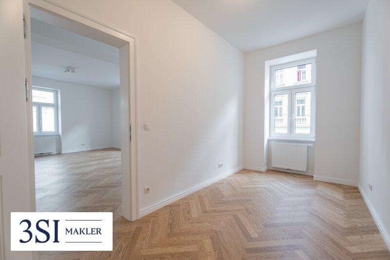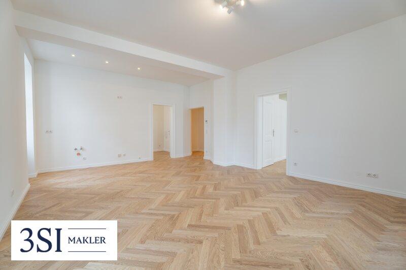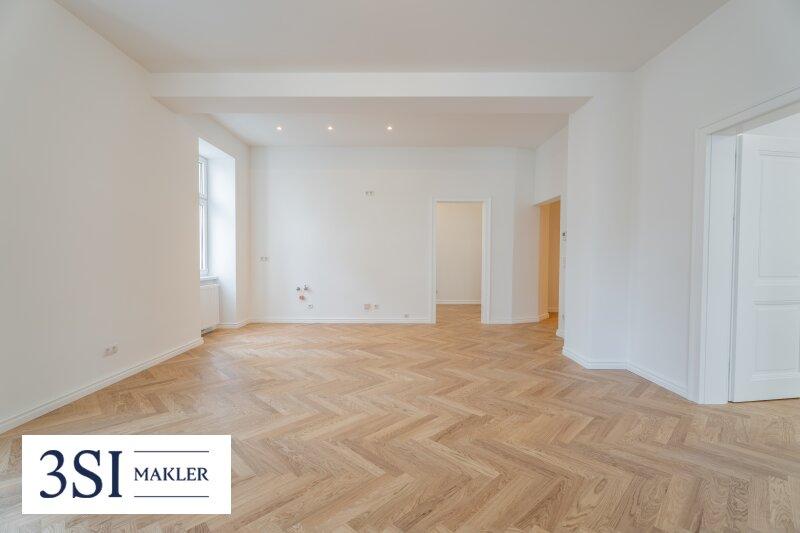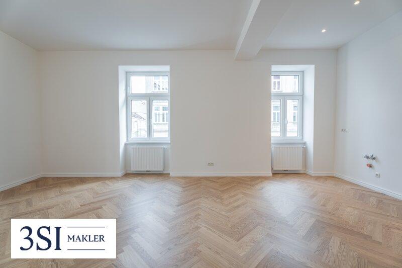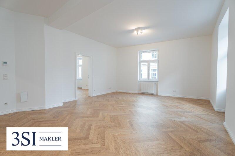 Im Zuge der Sanierung wurde besonderer Wert auf Qualität, Komfort und zeitloses Design gelegt. Die Wohnung ist mit Fußbodenheizung, edlem Eichen-Fischgrätparkett in den Wohnräumen sowie einer hochwertigen, modernen Badausstattung versehen. Die offene Wohnküche schafft gemeinsam mit den großen Fensterflächen ein helles und einladendes Wohnambiente.