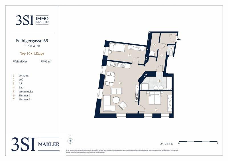 Die großzügige Raumaufteilung umfasst einen Vorraum, eine moderne Wohnküche, zwei Zimmer, ein stilvolles Badezimmer, ein separates WC sowie einen Abstellraum und bietet ein ideales Wohnkonzept für Familien, Paare oder anspruchsvolle Eigennutzer.