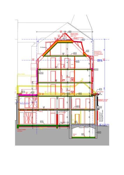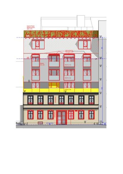 Ein Ausbau des Rohdachbodens wurde bereits baubewilligt, die Baugenehmigung zur Abtragung der bestehenden Dachkonstruktion und den Ausbau des Dachgeschosses liegt bereits vor. Sie ermöglicht eine Aufstockung um zwei weitere Festgeschosse, sowie zwei Dachgeschosse. Durch den Um- und Ausbau würde sich eine Wohnnutzfläche von insgesamt ca. 767,76 m2 ergeben. Für alle Wohnungen sind Außenflächen in Form von Balkon, Terrasse oder Loggia geplant. Ebenso kann laut Einreichplan ein neues und barrierefreies Treppenhaus mit Personenlift, der im Innenhof vom Erdgeschoss bis ins Dachgeschoss führen soll, errichtet werden. Weiteres sind ein Kinderwagen- und Fahrradabstellraum im Innenhof geplant. Auf dem Dach ist eine Photovoltaikanlage mit 18 Modulen vorgesehen.