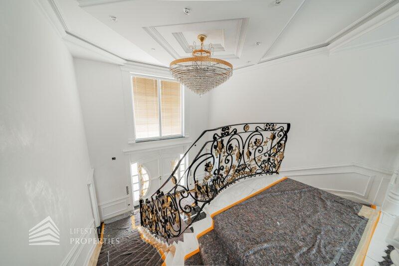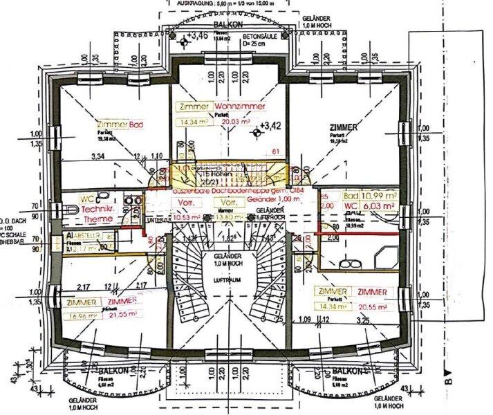Über den Eingangsbereich gelangt man in die obere Etage, welche sich in vier Zimmer, einen Technikraum und zwei Badezimmer aufteilt. Der Flur bringt Sie zentral in alle Räumlichkeiten. Ein traumhafter ca. 16 m² großer Balkon, welcher über den Garten blickt, befindet sich ebenfalls auf dieser Etage. Zwei kleinere ca. 7 m² große Balkone liegen auf der gegenüberliegenden Seite des Hauses.