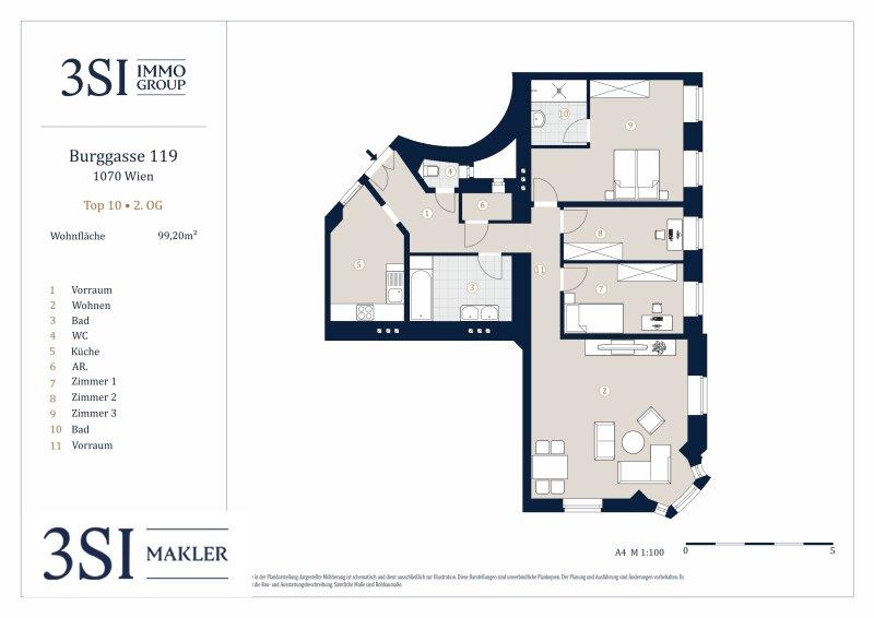 Die Wohnung befindet sich im 2. Obergeschoß in der Burggasse 119 im 7. Wiener Gemeindebezirk, einem lebendigen und beliebten Viertel. Die Umgebung zeichnet sich durch eine hohe Fußgängerfrequenz, zahlreiche Geschäfte, Cafés und Restaurants aus, was für eine hohe Sichtbarkeit sorgt. Nur wenige Gehminuten entfernt befinden sich die U-Bahn-Stationen U3 Zieglergasse und U6 Gumpendorfer Straße, die eine ausgezeichnete Anbindung an den öffentlichen Verkehr bieten.