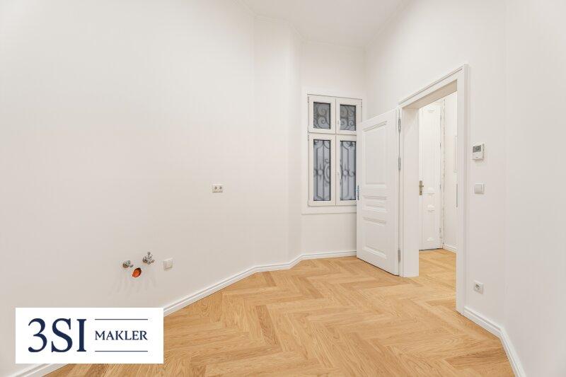 Die gesamte Wohnung ist mit edlem Eichenparkett im Fischgrätmuster ausgestattet. Türen und Fenster wurden im klassischen Altbaustil erneuert und unterstreichen den besonderen Charme dieser Immobilie. Als Erstbezug nach umfassender Sanierung verbindet dieses Objekt historische Eleganz mit modernem Wohnkomfort perfekt für alle, die das Besondere suchen.