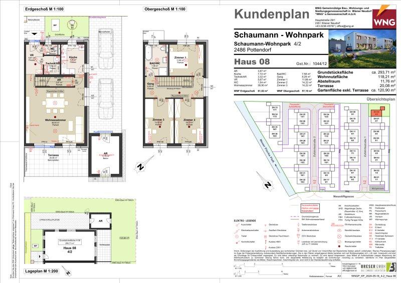 Die Schaumann-Wohnpark - Doppeltraum Pottendorf umfasst insgesamt 18 Doppelhäuser, jedes bestehend aus einem Erd- und Obergeschoss, gefertigt in solider Massivbauweise. Die Architektur besticht durch moderne Flachdächer und großzügige Terrassen, die einen nahtlosen Übergang zwischen Drinnen und Draußen schaffen.
