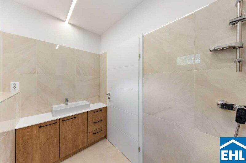 Vom großzügigen Eingangsbereich, der ausreichend Platz für Schränke und Stauraum bietet, gelangt man in einen vielseitig nutzbaren Mehrzweckraum. Von dort aus sind ein unteres Schlafzimmer bzw. Gästezimmer, ein angrenzendes Badezimmer sowie ein praktischer Schrankraum begehbar.