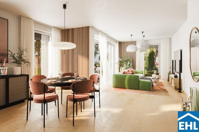 Sämtliche Wohnungen beeindrucken nicht nur durch ihre durchdachten Grundrisse, sondern auch durch ihre sehr hochwertige Ausstattung mit viel Liebe zum Detail. Die attraktive Grundrissgestaltung bietet großzügige Wohnbereiche und gemütliche Schlafzimmer. Zudem wurden Gärten, Balkone, Loggien und Terrassen integriert, welche zusätzlichen Freiraum bieten und den Genuss der umliegenden Grünflächen ermöglichen.