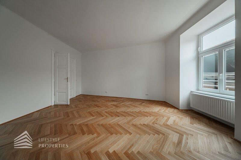 Nach Betreten des Objekts befinden Sie sich im großzügigen Vorraum mit einer Größe von ca. 11,63 m², mit einem Fenster zum Hof versehen. Von hier gelangen Sie einerseits in die separate Toilette, die Küche, welche ebenso mit einem Fenster zum Innenhof versehen ist, und andererseits ins Badezimmer mit einer Duschkabine. Sowohl der Vorraum als auch die Küche und das Bad sind verfliest. Des Weiteren gelangen Sie vom Vorzimmer ins Wohnzimmer mit ca. 32,67 m², welches durch zwei Fenster mit ausreichend Tageslicht erhellt wird. Hier herrscht genügend Platz für eine Essecke sowie eine gemütliche Couchlandschaft. Vom Wohnzimmer kommen Sie in das Trapezförmige Schlafzimmer mit einer Größe von ca. 17 m² und zwei hofseitigen Fenstern, welche ruhige Nächte versprechen. Beide Wohnräume sind mit hochwertigen Parkettboden ausgestattet.