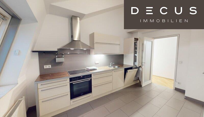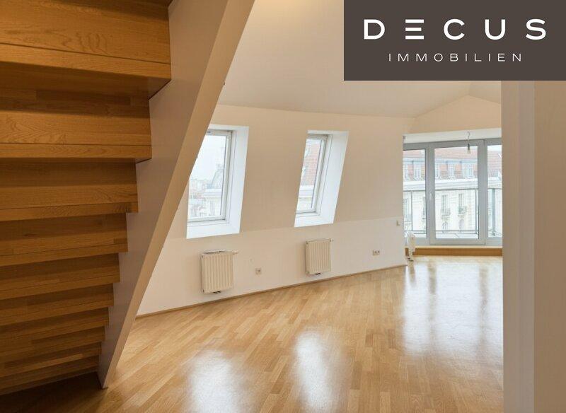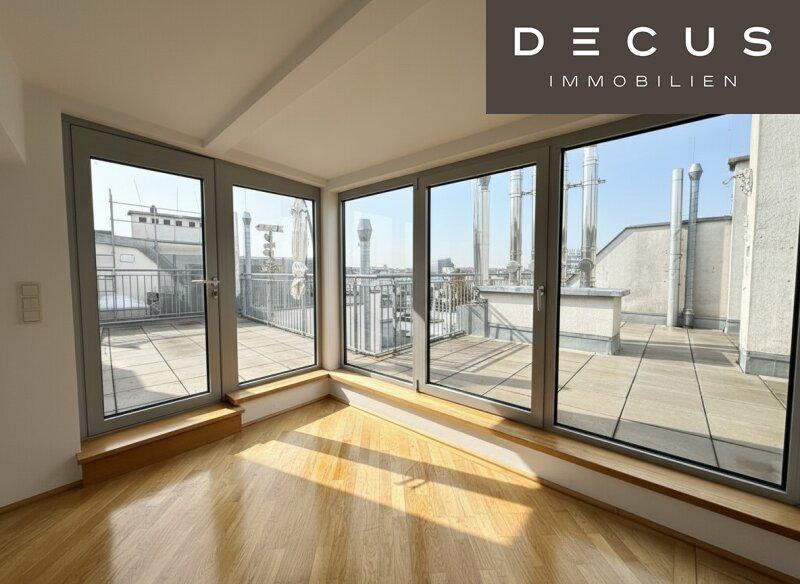 Im 4. Bezirk unweit vom Karlsplatz wird eine klimatisierte Dachgeschosswohnung mit insgesamt zwei kleineren und einer großen Terrasse wieder vermietet. Die Wohnung besteht aus einem hellen Wohn-Esszimmer, vier Schlafzimmer und drei Terrassen. Sie ist mit Klimaanlagen und Außenjalousien ausgestattet. Zusätzlich ist ein Abstellraum und zwei Badezimmer vorhanden. Zur größeren Terrasse gelangt man über eine Treppe und einem kleinen Vorraum im oberen Geschoss der Wohnung. Die Wohnung wird abgesehen von der Küche unmöbliert vermietet. Sie ist mit einem Parkettboden ausgestattet.