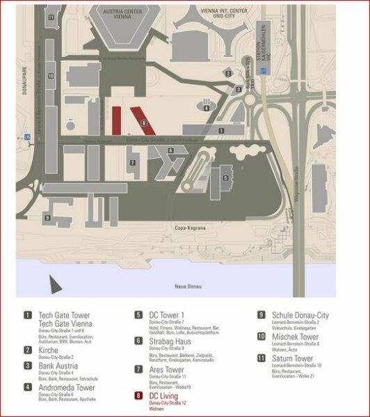 Das Austria Center Vienna liegt ca.100m von dem Donau-City DC-Living Apartment, die UNO nur 5 Gehminuten entfernt (unmittelbar daneben);
