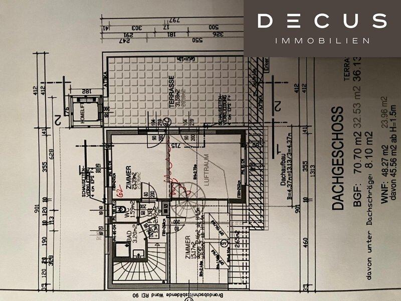 Balkon im Dachgeschoß mit einer Größe von 31,58 m²