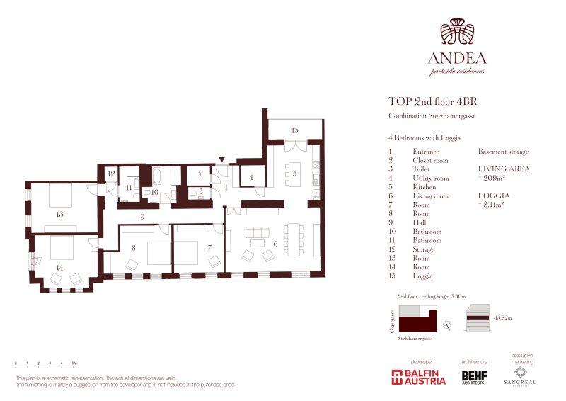 Betreten Sie diese außergewöhnlich großzügige Vier-Schlafzimmer-Wohnung mit Loggia, die sich über rund 209 m² Wohnfläche erstreckt und mit einer beeindruckenden Raumhöhe von ca. 3,50 Metern ein besonders elegantes und luftiges Wohngefühl vermittelt. Diese exklusive Wohnung im 2. Obergeschoss des Projekts ANDEA Parkside Residences verbindet klassische Wiener Architektur mit modernem Wohnkomfort und hochwertiger Ausstattung ein Zuhause für anspruchsvolle Bewohnerinnen und Bewohner, die Großzügigkeit, Stil und urbane Lebensqualität schätzen.