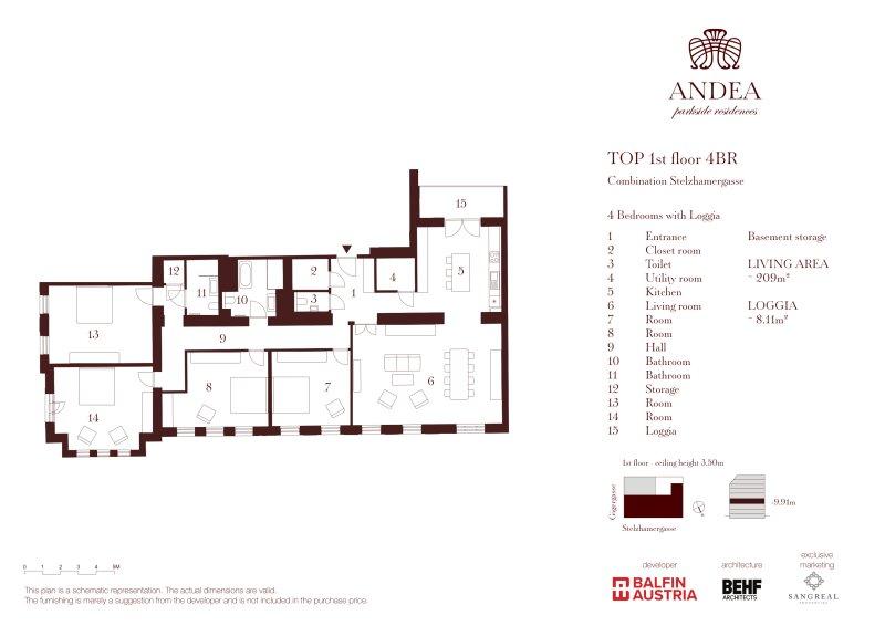 Betreten Sie diese außergewöhnlich großzügige Vier-Schlafzimmer-Wohnung mit Loggia, die sich über rund 209 m² Wohnfläche erstreckt und mit einer beeindruckenden Raumhöhe von ca. 3,50 Metern ein besonders elegantes Wohngefühl vermittelt. Diese exklusive Wohnung im 1. Obergeschoss des Projekts ANDEA Parkside Residencesverbindet klassische Wiener Architektur mit modernem Wohnkomfort und hochwertiger Ausstattung. Ein Zuhause für anspruchsvolle Bewohnerinnen und Bewohner, die Großzügigkeit, Stil und urbanen Lebensraum schätzen.