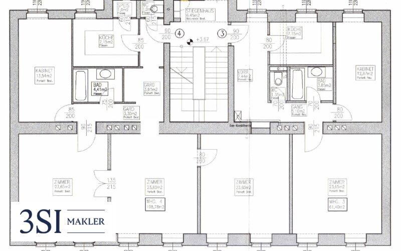 Diese unsanierten nebeneinander liegenden Wohnungen (Top3 61,40m³ + Top 4 108,78m²) bieten Ihnen die Möglichkeit die Wohnungen nach Ihren Wünschen und Vorstellungen zu kombinieren, sodass man eine Gesamtwohnfläche von ca. 170m² mit 5-6 Zimmern erhält.