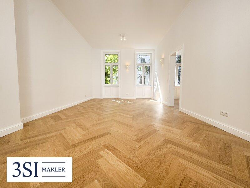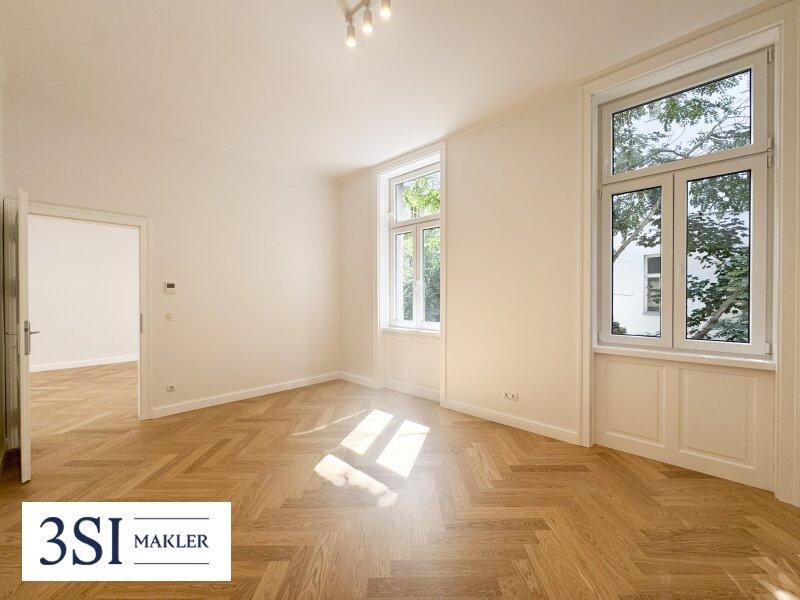 In der eben sanierten Stilaltbau-Wohnung lässt sich eine gediegene Ausstattung mit einer erlesenen Auswahl an Materialien genießen. Die Wohnung wurde mit aufwendig verlegtem Fischgrät-Eichenparkett und mit stilvollen Kassettentüren ausgestattet. Eleganter Deckenstuck und feine Vertäfelungen unterstreichen den einzigartigen Alt-Wien-Charakter. Traditionelle Holzkastenfenster, die durch moderne Isolierverglasung aufgewertet wurden zieren straßenseitig die Fassade. Das moderne Bad begeistert dank Markensanitärprodukten, einer Einbauwanne und einer Dusche mit erstklassiger Qualität, Komfort und Design.
