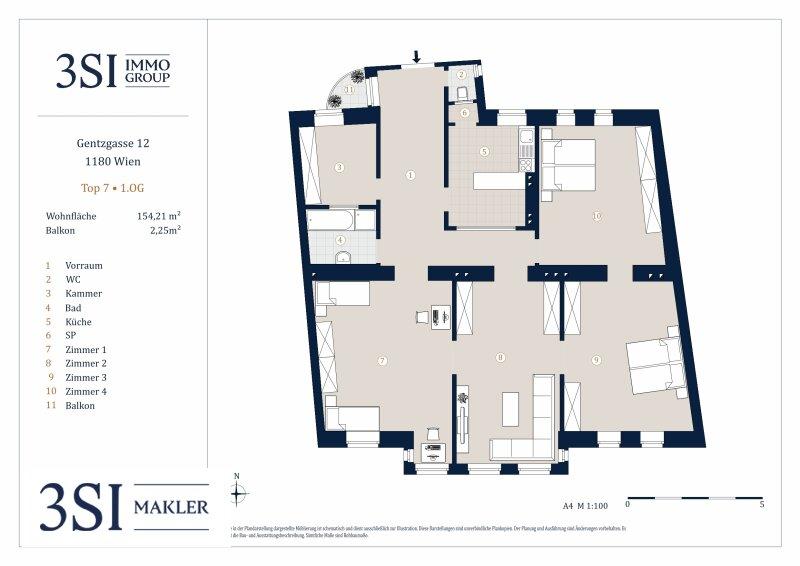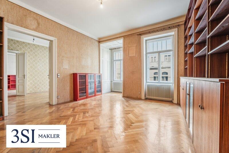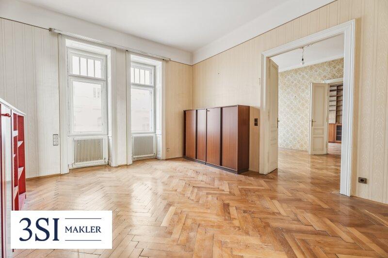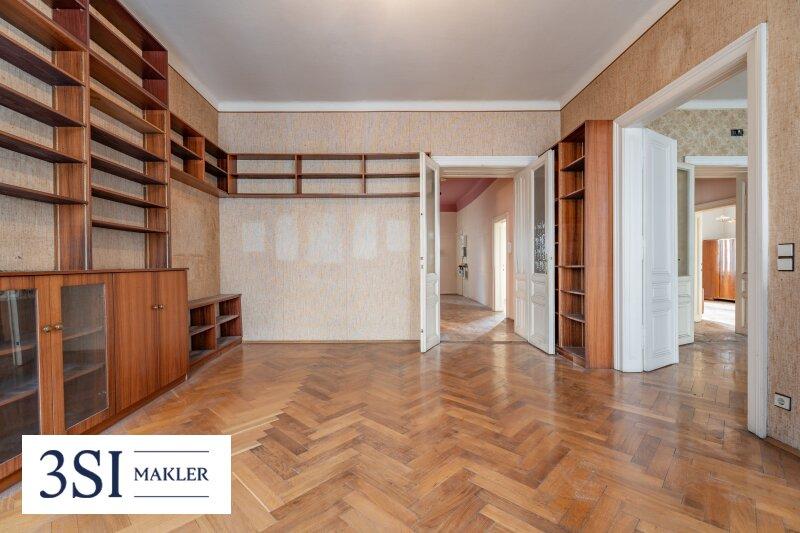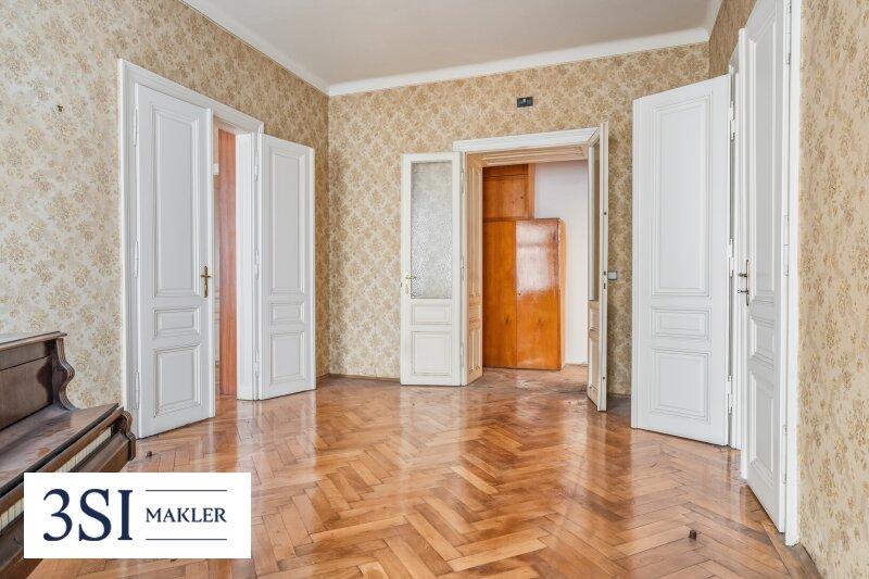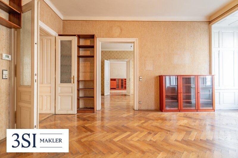 In einem eindrucksvollen Gründerzeitgebäude in bester Lage des 18. Bezirks gelangt diese großzügig geschnittene 4,5-Zimmer-Eigentumswohnung mit ca. 152 m² Wohnfläche, Balkon in den Innenhof sowie Stellplatz im Innenhof zum Verkauf. Das prachtvolle Haus präsentiert sich in gepflegtem Zustand und ist mit einem Aufzug ausgestattet. Hohe Räume, klassischer Altbaucharakter und eine durchdachte Grundrissgestaltung verleihen diesem Objekt ein besonders repräsentatives Ambiente.
