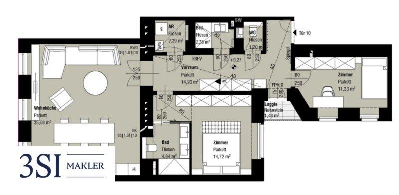 Mit ihrem klar strukturierten Grundriss eignet sich die Wohnung hervorragend für Paare oder kleine Familien, die großzügiges Wohnen mit hoher Lebensqualität verbinden möchten.