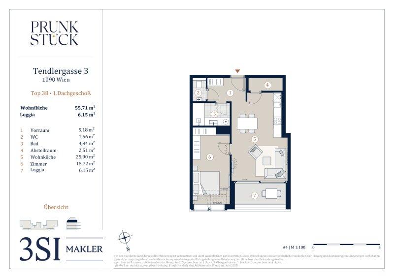 Perfekt geschnittener 2-Zimmer Dachgeschosswohnung mit knapp 55,71 m² Wohnfläche und 6,15 m² Loggia: