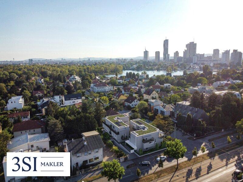 Die architektonisch außergewöhnlich konzipierte Wohnhausanlage liegt in einem der schönsten Naherholungsgebiete von Wien in Kaisermühlen an der Alten Donau, vis-à-vis des historischen Strandbads Gänsehäufel mit Blick auf die Wiener Skyline. Das Ensemble nahe der UNO-City überzeugt mit seinem stimmigen wie stimmungsvollen Wohnambiente: In zwei eleganten, L-förmig designten Gebäuden entstehen auf Baurechtsgrund des Stifts Klosterneuburg 18 neue Eigentumswohnungen mit ganz besonderem Flair moderne Erker, begrünte Steildächer und idyllische Laubengänge sowie die eigenen Gärten, Terrassen oder Balkone werden die Herzen naturbegeisterter Großstädter höher schlagen lassen, die gerne in 25 Minuten mit den Öffis am Wiener Stephansdom sein möchten.