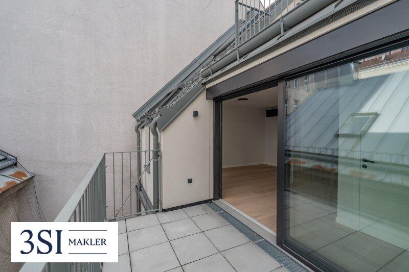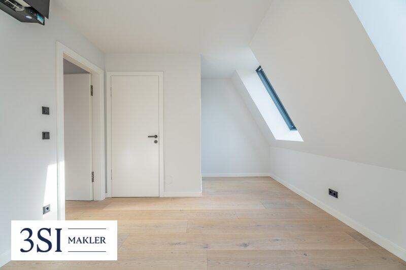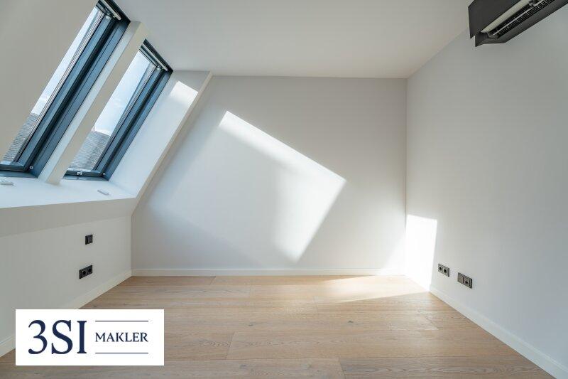 Die Dachgeschosswohnungen drei Einheiten im 1. Dachgeschoß und das Penthouse im 2. Dachgeschoß bilden das architektonische Highlight des Projekts. Großzügige Fensterfronten lassen die lichtdurchfluteten Räume erstrahlen und eröffnen eindrucksvolle Ausblicke über die Stadt.