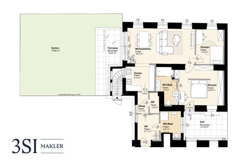 Der guten Ordnung halber halten wir fest, dass, sofern im Angebot nicht anders vermerkt, bei erfolgreichem Abschlussfall eine Provision anfällt, die den in der Immobilienmaklerverordnung BGBI. 262 und 297/1996 festgelegten Sätzen entspricht das sind 3 % des Kaufpreises zzgl. 20% USt. Diese Provisionspflicht besteht auch dann, wenn Sie die Ihnen überlassenen Informationen an Dritte weitergeben. Letztlich weisen wir darauf hin, dass wir als Doppelmakler tätig sind und ein familiäres/wirtschaftliches Naheverhältnis zwischen der 3SI Makler GmbH und der Verkäuferin besteht.
