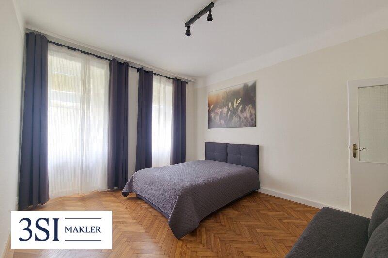 In einem repräsentativen Stilaltbau mit gepflegter Substanz befindet sich diese großzügige 3-Zimmer-Wohnung im zweiten Obergeschoss. Der sehr gute Erhaltungszustand verleiht der Wohnung eine gepflegte Ausstrahlung, die dem Charme vergangener Zeiten ebenso gerecht wird wie modernen Wohnansprüchen. Schon beim Eintreten vermittelt der großzügige Vorraum mit integrierter Küche ein Gefühl von Offenheit und Raum. Die Küche fügt sich funktional und unaufdringlich in den Eingangsbereich ein und bietet dabei ausreichend Platz für kulinarisches Leben und geselliges Beisammensein. Das anschließende Wohnzimmer beeindruckt mit großzügigen Proportionen und einer angenehmen Belichtung, die dem Raum eine stilvolle Leichtigkeit verleiht. Zwei Schlafzimmer bieten sich als Rückzugsort an und sorgen für ungestörte Ruhe.