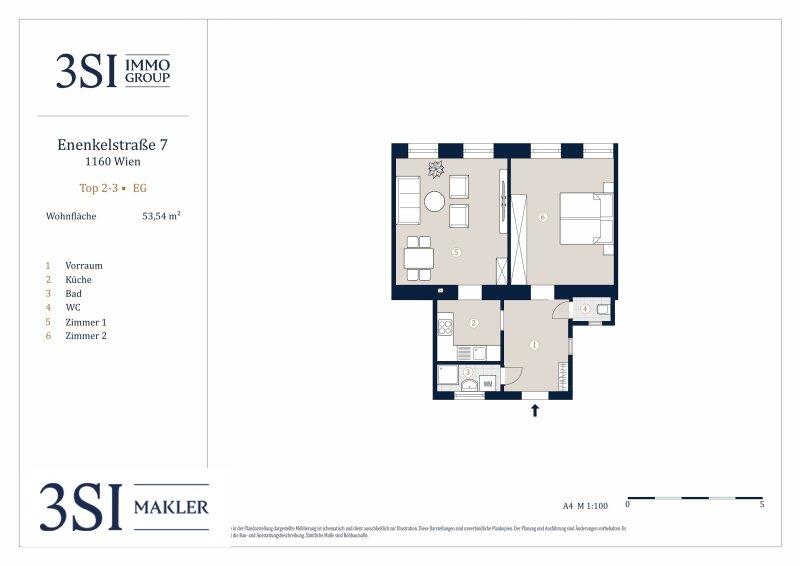Diese attraktive Wohnung liegt im Erdgeschoss eines gepflegten Altbaus, der durch seine charmante Fassade und den historischen Charakter besticht. Mit einer Größe von 53,54 m² bietet sie viel Raum für ein komfortables Zuhause. Der gut durchdachte Grundriss sorgt für eine angenehme Raumaufteilung und viel Tageslicht. Die Räume sind hell und freundlich gestaltet, ideal für Singles, Paare oder kleine Familien. Ein geräumiger Vorraum bietet ausreichend Platz für eine Garderobe. Die separate Küche, zwei geräumige Zimmer, ein modernes Bad mit Dusche und ein WC komplettieren dieses charmante Apartment.