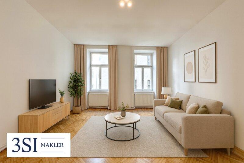 Zum Verkauf gelangt eine charmante 2-Zimmer-Wohnung im 3. Obergeschoss eines klassischen Wiener Altbaus. Auf rund 57m² Wohnfläche vereint sie zeitlose Eleganz mit historischem Flair und besticht durch großzügige Raumhöhen, edles Fischgrätparkett und sorgfältig erhaltene Altbaudetails. Die Wohnung wurde kürzlich aufgefrischt und präsentiert sich in einem gepflegten, einladenden Zustand, der historischen Charme mit modernem Wohnkomfort harmonisch verbindet.