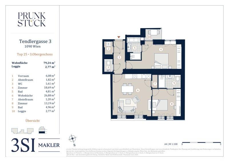 Der einladende Vorraum bildet das zentrale Entree der Wohnung und verbindet alle Wohnbereiche. Das separate WC sowie eines der beiden hochwertig ausgestatteten Badezimmer sorgen für Komfort im Alltag. Die zwei Abstellräume bieten wertvollen Stauraum.