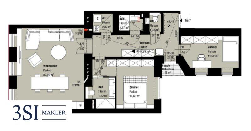 Diese attraktive 3-Zimmer-Wohnung mit ca. 87m² Wohnfläche sowie einer zusätzlichen Loggia von rund 1,5m² befindet sich im Mezzanin eines stilvoll sanierten Altbaus. Durch die Ausrichtung zur Straße und zum ruhigen Innenhof bietet sie sowohl urbanes Flair als auch erholsame Rückzugsmöglichkeiten.