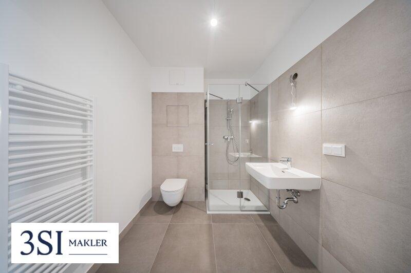 - Badezimmer mit Dusche, WC und Waschmaschinenanschluss