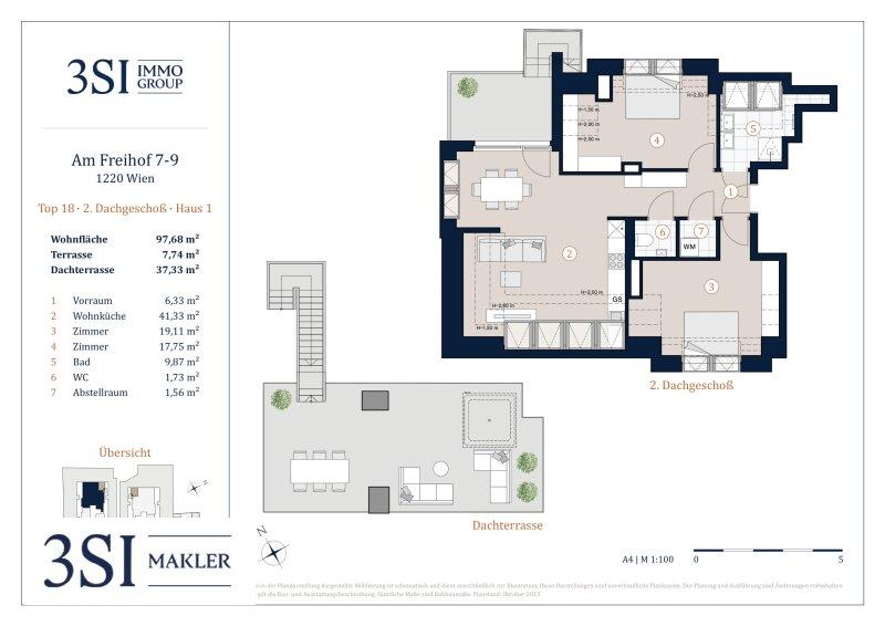 Auf knapp 34m2 Dachterrasse kann man einiges anstellen. Ob Sie draußen sitzen und lesen, gärtnern, mit Freunden und Familie essen oder in Ihrem Whirlpool entspannen, es ist einfach fein! Ihre rund 38m2 große Wohnküche bietet Zugang zur Terrasse auf Wohnebene. Die beiden Schlafzimmer, das Bad, das WC, der Abstellraum und der Vorraum sind für Sie hochwertig und modern ausgestattet und sorgen somit für ein stilvolles Ambiente.