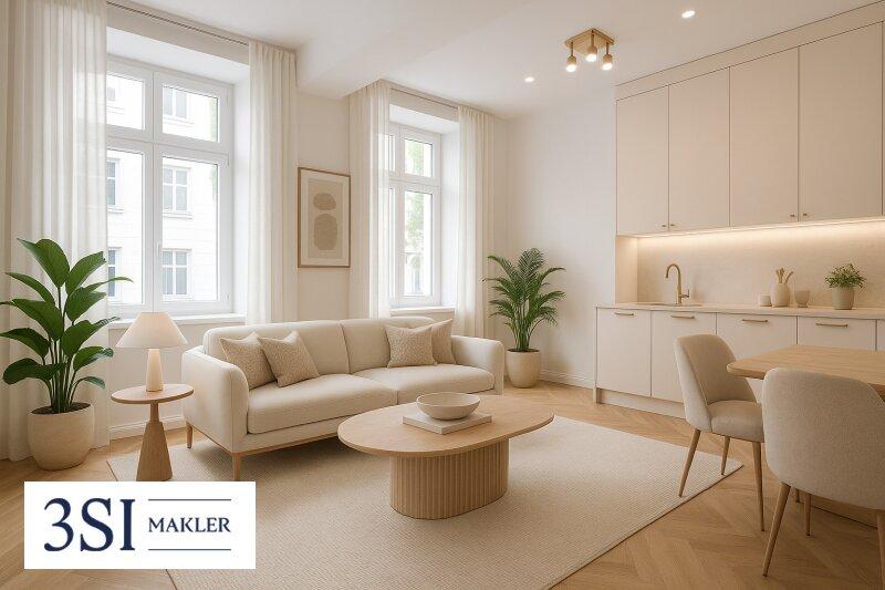 Zum Verkauf gelangt eine sanierte 2-Zimmer Altbauwohnung im Hochparterre einer gepflegten Liegenschaft. Diese ansprechende Erstbezugswohneinheit mit ca. 45m² überzeugt mit ihrer hochwertigen Ausstattung und einem durchdachten Grundriss mit folgender Raumaufteilung: