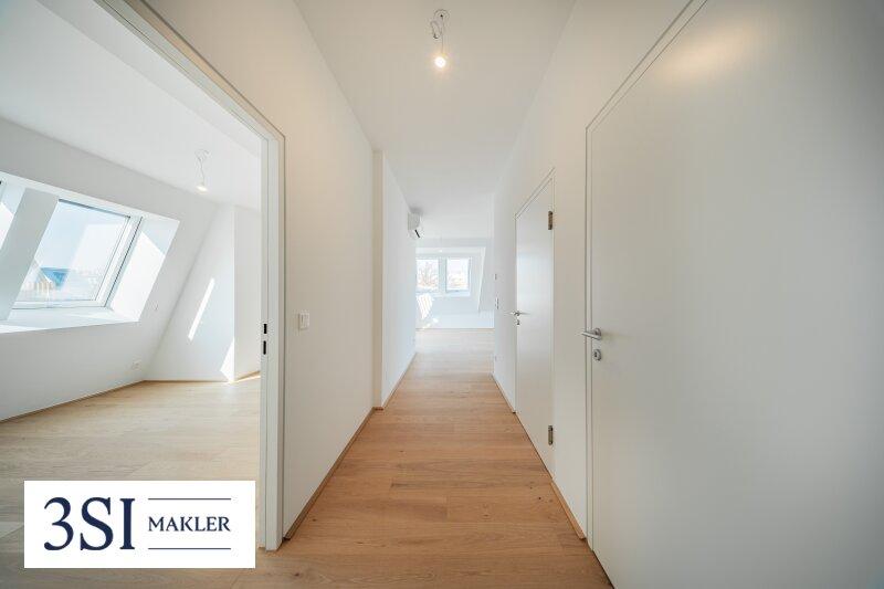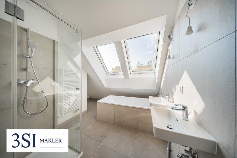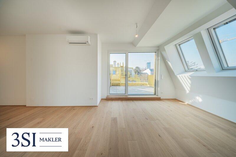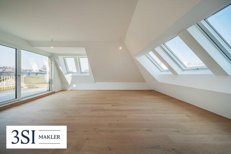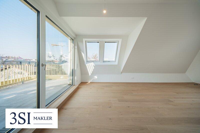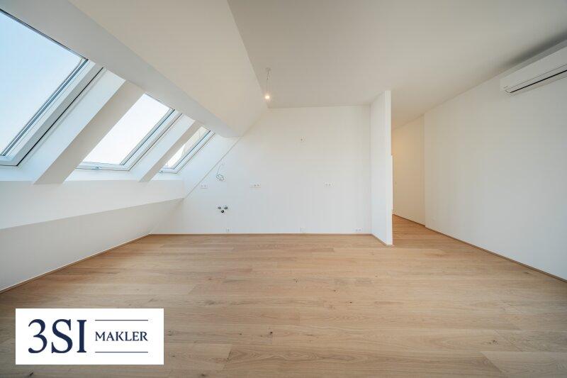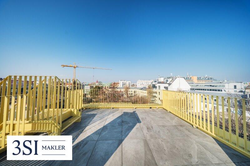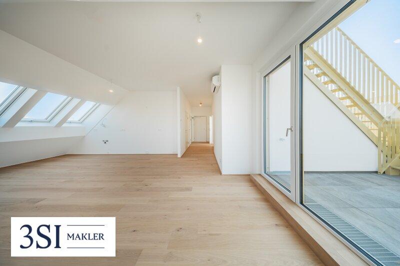 Dieses besondere 3-Zimmer Penthouse bietet nicht nur ausreichend Platz, sondern auch ein modernes Wohngefühl, das höchsten Komfort verspricht. Das Highlight dieser Wohnung ist zweifellos die sonnendurchflutete Wohnküche, die dank der großzügigen Fensterflächen einen wunderschönen Blick ins Grüne ermöglicht. Hier können Sie den Tag entspannt beginnen und die Abende bei einem gemütlichen Essen ausklingen lassen. Die angrenzende Terrasse verbindet nahtlos den Innen- und Außenbereich und lädt zum Entspannen und Sonnenbaden ein. Doch damit nicht genug - über die Terrasse erreichen Sie die darüberliegende Dachterrasse, die Ihnen einen fantastischen Panoramablick bietet. Die beiden Schlafzimmer sind optimal ausgerichtet - eines nach Norden und das andere nach Süden, um Ihnen ein angenehmes Schlafklima zu bieten. Die moderne Ausstattung der Wohnung umfasst zudem eine Fußbodenheizung als auch eine Klimaanlage. Willkommen in Ihrem neuen Zuhause, wo Luxus und Komfort Hand in Hand gehen und Ihnen ein traumhaftes Wohnambiente bieten.