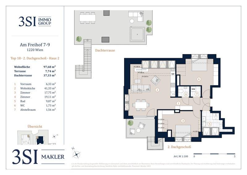 Das Penthouse verfügt über rund 98 m² und teilt sich wie folgt auf: