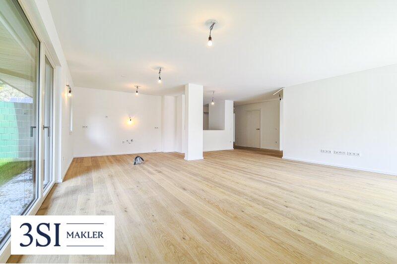 Der offene Wohnbereich, ausgestattet mit einer modernen Wohnküche, lädt zum gemeinsamen Kochen und Verweilen ein. Hier können Sie Ihre kulinarischen Fähigkeiten entfalten und unvergessliche Momente mit Freunden und Familie erleben. Die großen Fenster sorgen für eine lichtdurchflutete Atmosphäre und ermöglichen einen wunderschönen Blick ins Grüne, der Ihnen jeden Tag ein Stück Natur in Ihr Zuhause bringt.