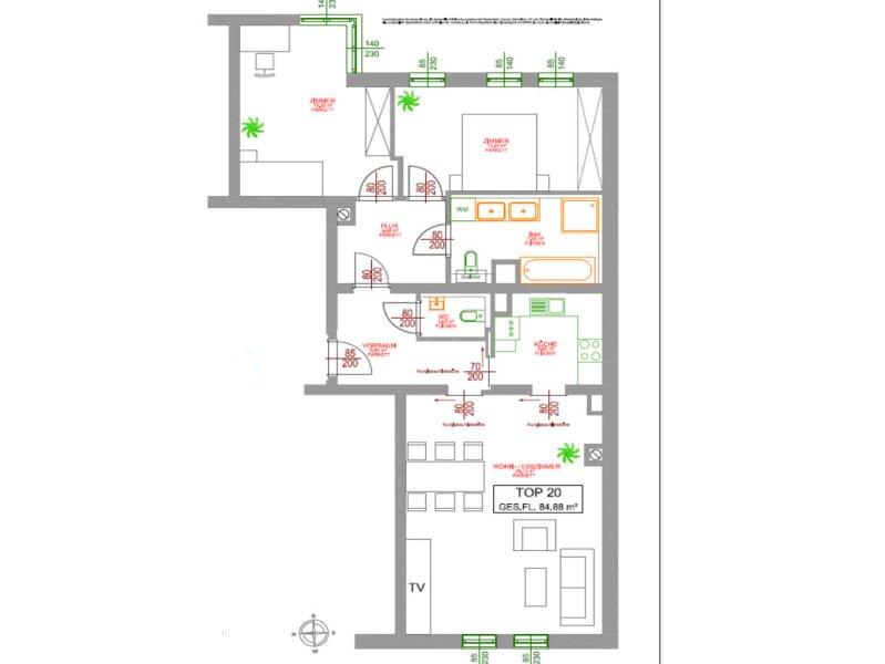Diese wunderschöne 85 m2 Wohnung gliedert sich in einen großzügigen Wohnbereich mit halboffener Küche, zwei großzügige Schlafzimmer, ein Badezimmer mit Wanne und Dusche, einen großzügigen Vorraum und ein getrenntes WC.