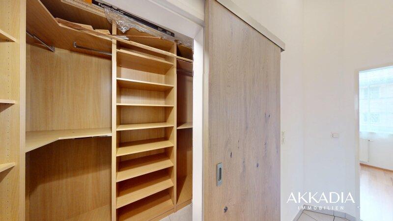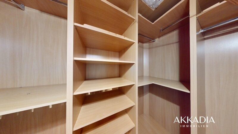 Voll möblierter Schrankraum mit außergewöhnlicher Raumhöhe und viel Stauraum
