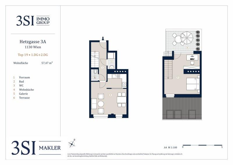 Diese moderne Dachgeschoss-Maisonette überzeugt mit einer Wohnfläche von rund 57,47 m², einem offenen Raumkonzept und einer sonnigen Terrasse mit ca. 14,15 m², die zusätzlichen Wohnkomfort im Freien bietet. Großzügige Glasflächen, eine offene Galerie sowie eine hochwertige Ausstattung schaffen ein helles und stilvolles Wohnambiente mit besonderem Charakter.