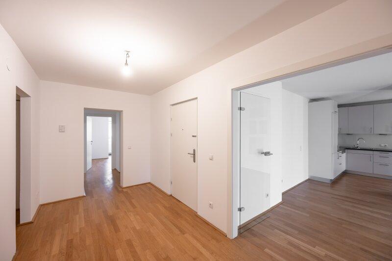Diese wunderschöne ca. 140 m² große Neubauwohnung mit zwei kleinen Balkonen gliedert sich in einen großzügigen Wohnbereich mit Küche, drei Schlafzimmer, zwei Badezimmer, einen großzügigen Abstellraum und ein getrenntes WC.