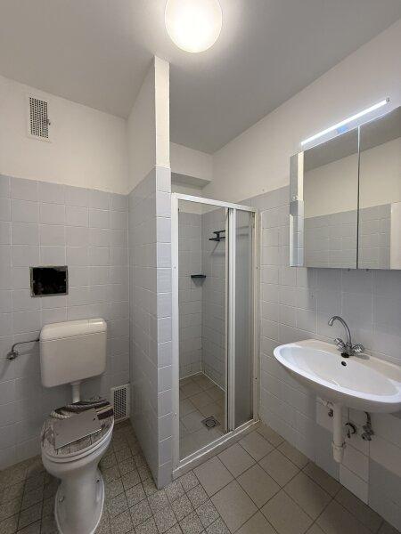 Badezimmer mit Dusche und WC funktional ausgestattet