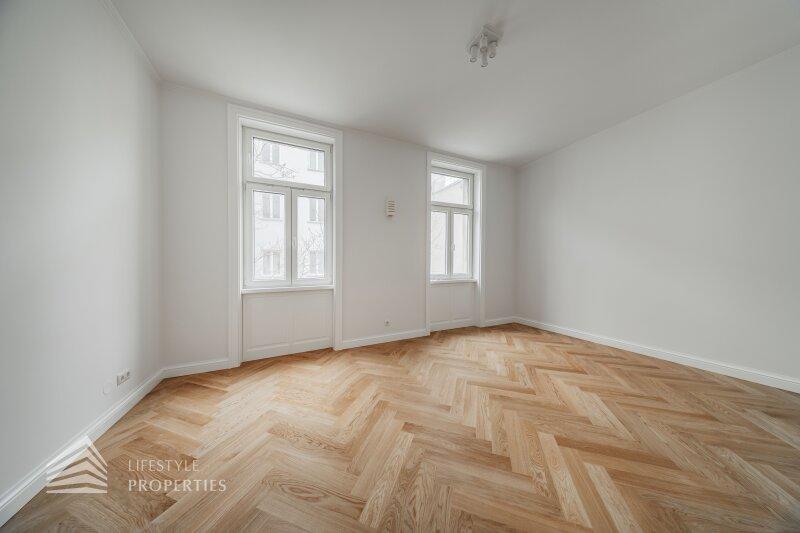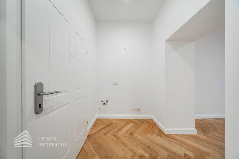 Eleganter Deckenstuck und feine Vertäfelungen unterstreichen den einzigartigen Alt-Wien-Charakter. Traditionelle Holzkastenfenster, die durch moderne Isolierverglasung aufgewertet wurden zieren straßenseitig die Fassade. Die Wärmeversorgung und Warmwasserbereitung erfolgt über Gasetagenheizung. Die Wärmeverteilung in der Wohnung erfolgt mittels Fußbodenheizung.