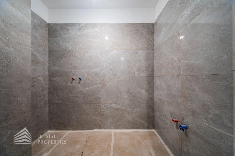 Die Wohnung mit ca. 85 m² ist ein Erstbezug und gliedert sich in einen Vorraum, große Wohnküche mit Anschlüssen für eine offene Küche, zwei Schlafzimmer, ein Badezimmer mit Doppelwaschbecken, Badewanne, Dusche und Toilette, einen Abstellraum mit Waschmaschinenanschluss, sowie eine separate Toilette mit Waschbecken. Von der Wohnküche und einem der beiden Schlafzimmer aus erreicht man die traumhafte Terrasse, sowie den großen Garten, der in einem schönem Innenhof liegt.