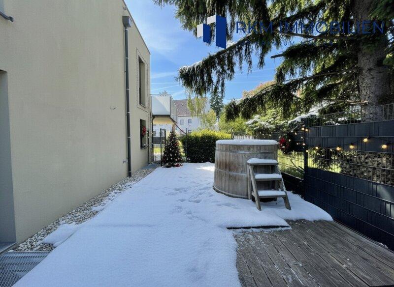 Der gepflegte Garten samt zwei Terrassen lädt zum Verweilen im Freien ein: Genießen Sie sonnige Frühstücke im Grünen oder entspannte Grillabende mit Freunden hier wird Ihr Zuhause zur Wohlfühloase.